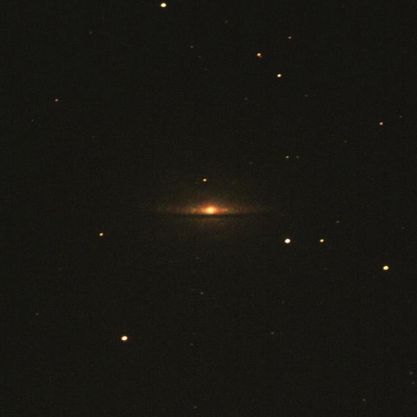 ![]() M104 (Sombrero Galaxy) - Composite from 1x50"Lum 1x20"Red + 1x20"Grn + 1x20"Blu An unbarred spiral galaxy in the constellation Virgo located 31,000,000 LY away Dia 82,000 LY, 9' x 4', AppMag 9, Massive black hole at centre has 1bn x solar mass Taken 05:30 8Jan2017 with Tenerife High Mag Telescope T2: 432mm (17") Dia x 2,940mm f/6.8 FOV: 43'x43' Camera: 4096x4096 px |